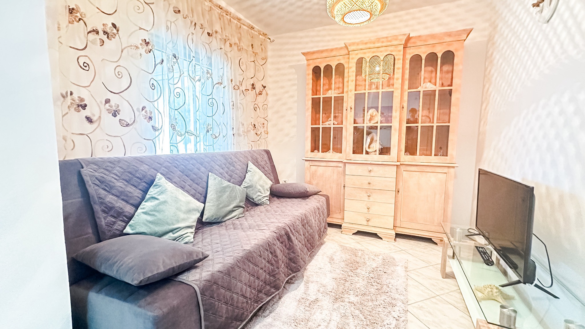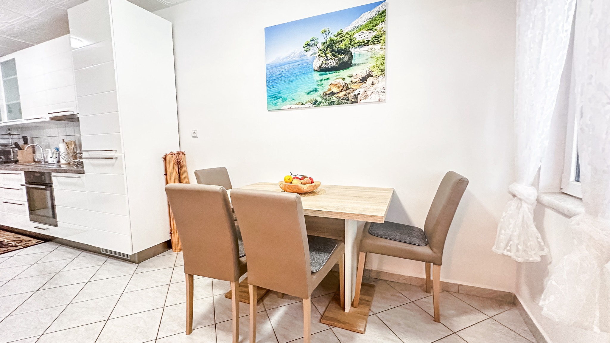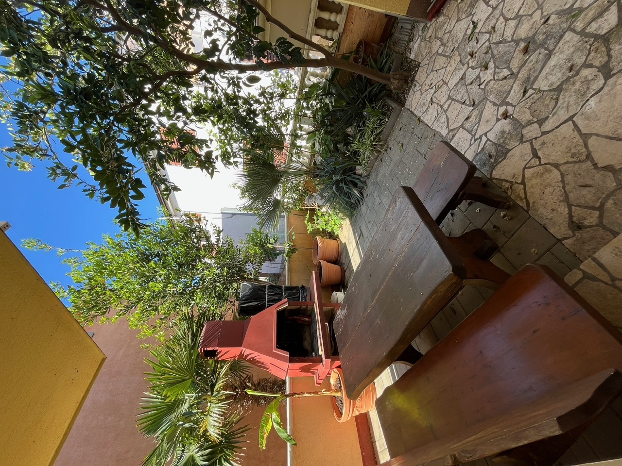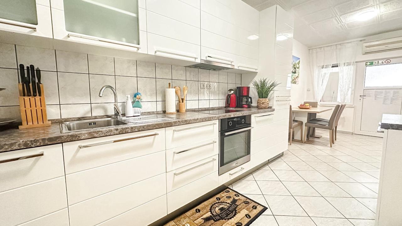 Az apartman az épület alsó szintjén, mely két szobával (2 db franciaágy) és egy nappalival (kihúzható két személyes kanapé) rendelkezik. A teraszon a reggelit és a vacsorát kellemes hangulatban lehet elfogyasztani, fedett hűvös és tágas. Átalakítás alatt vannak a szobák, új képek hamarosan.