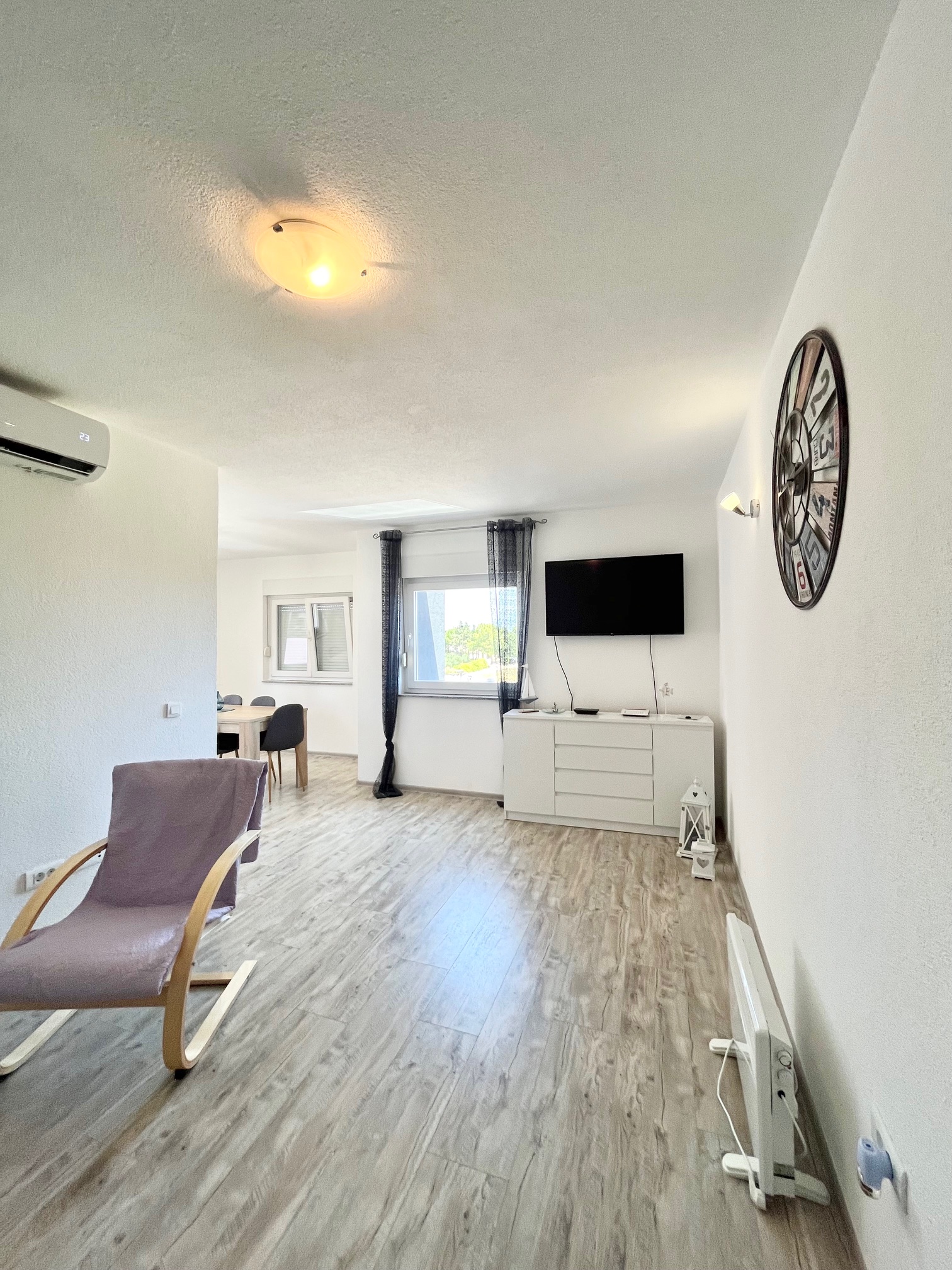 Felszereltség: klíma, okos TV, wifi, ágynemű, mikró, vízforraló, tea/kávéfőző, főzőlap/sütő, mosógép