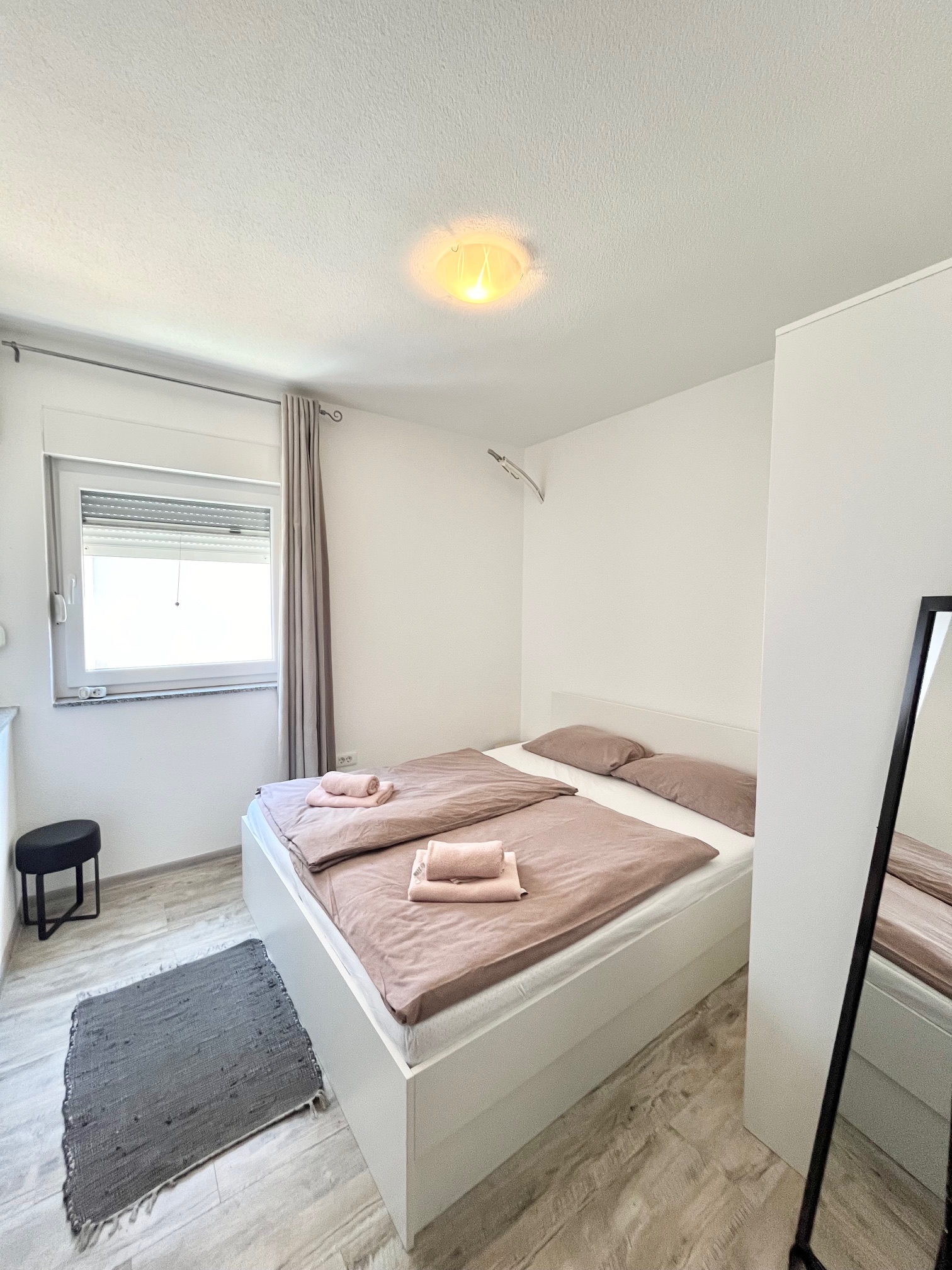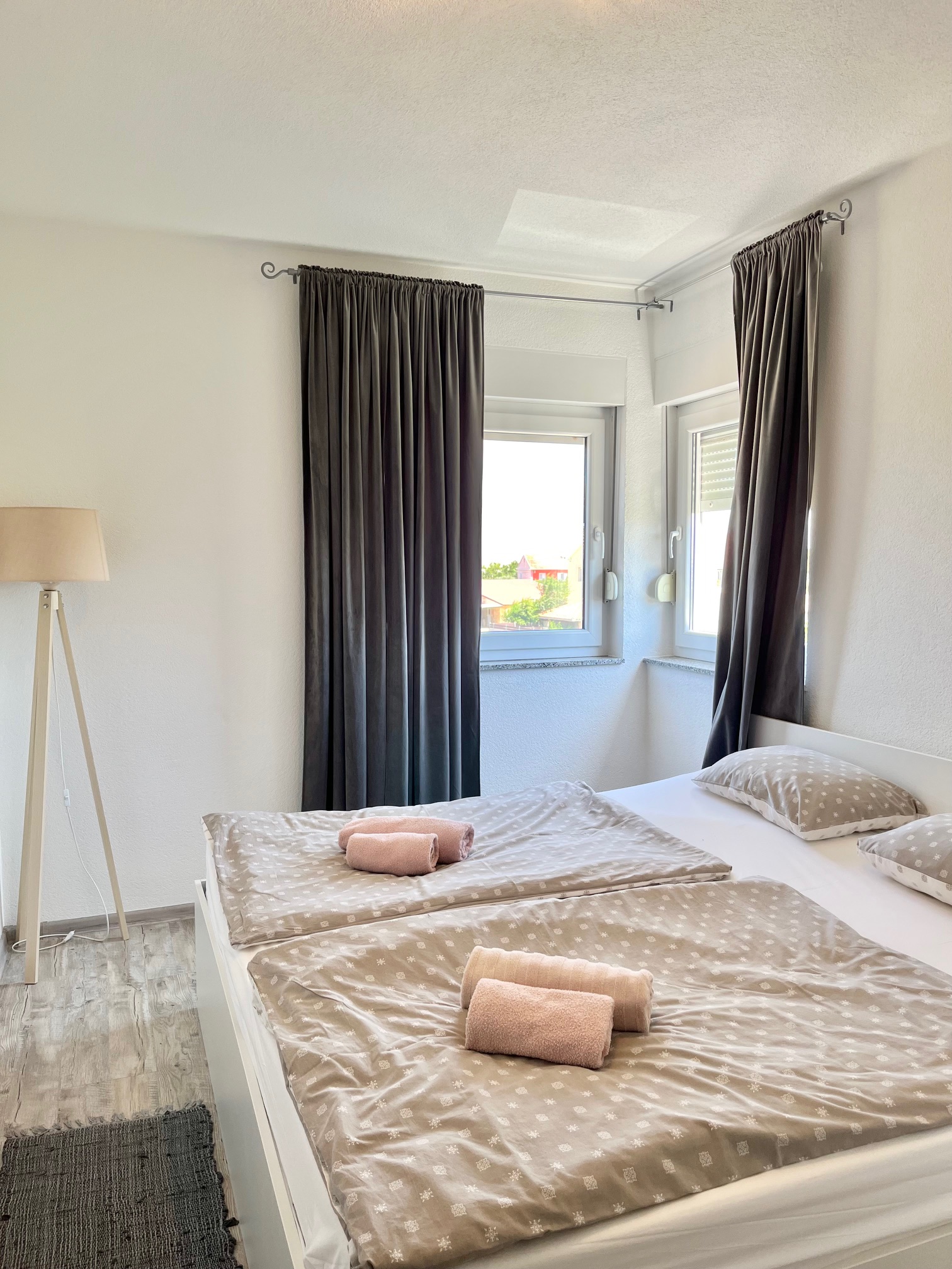 Két hálószoba (2 db franciaágy) és nappali (kihúzható kanapé) teljesen felszerelt konyhával, fürdőszoba (zuhanyzó) + wc