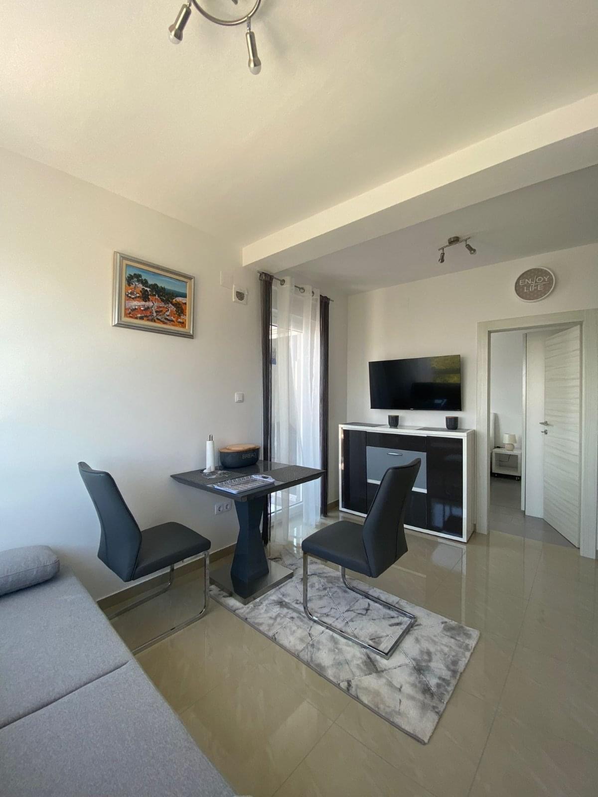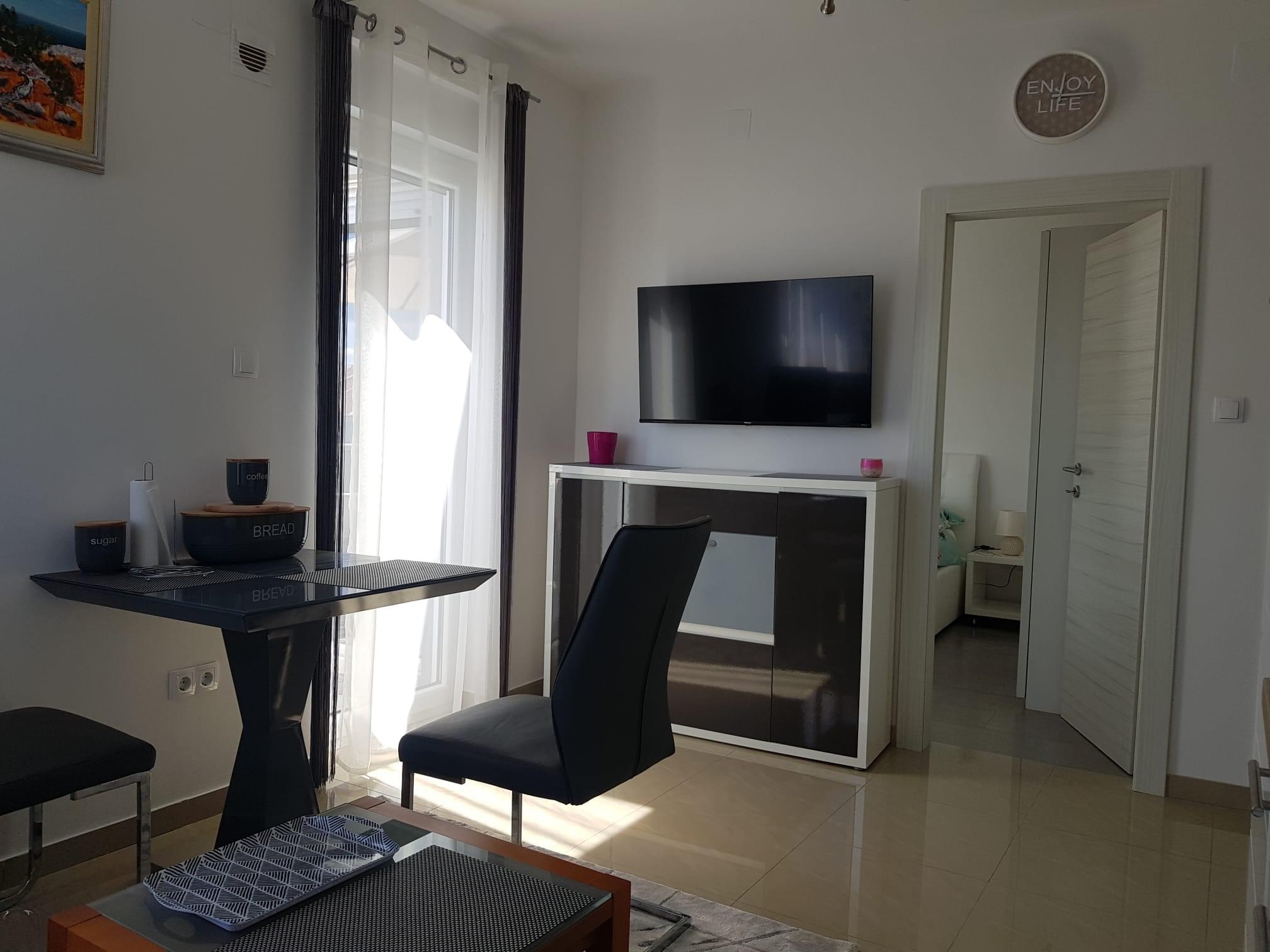 Az apartman teljesen felszerelt: Klíma, wifi, smart TV, netflix, ágynemű és törölköző