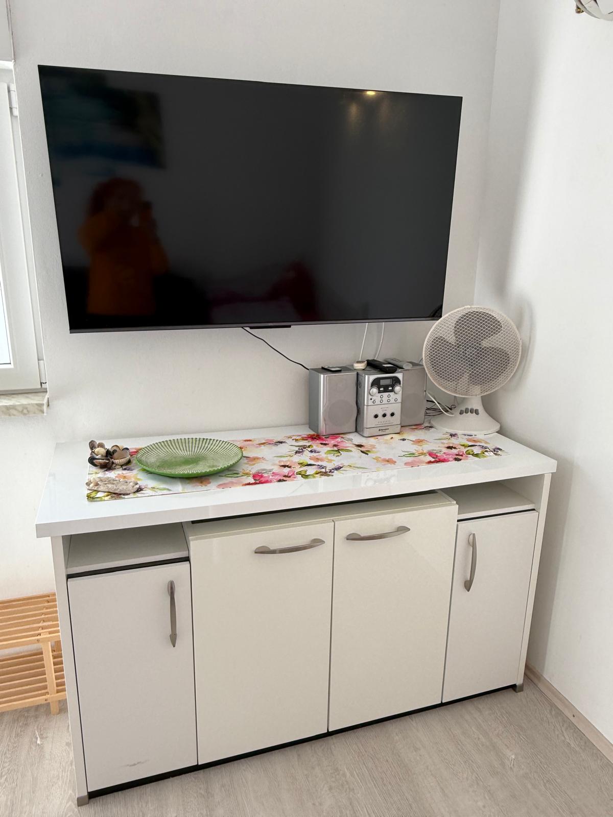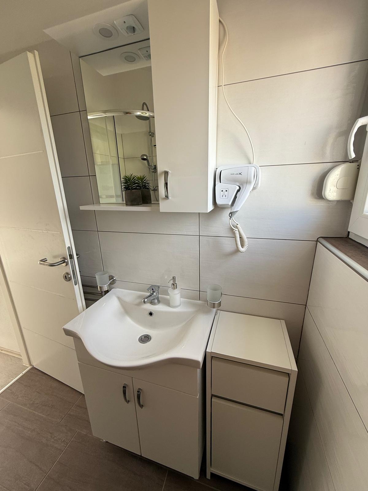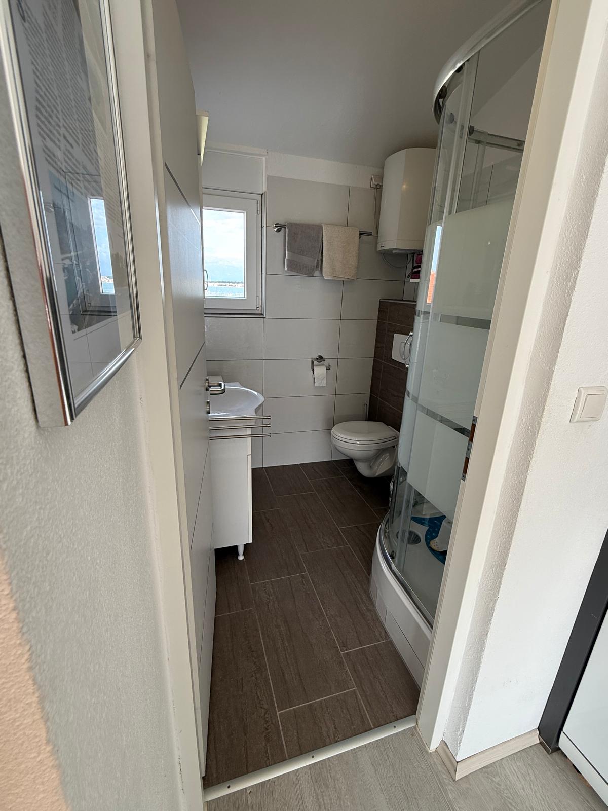 Az épületben 4 apartman található. Kilátás a tengerre! Az alsó szinten két nagyobb apartman. Kettő kisebb lakás pedig a felső szinten. Az Edwin apartman a felső szinten található és 4 személy részére foglalható. Egy hálószoba (franciaágy) és nappali (gyerekágy és kanapé). Két terasszal, az első terasz a hálószobából nyílik kilátással a tengerre. Grillezési lehetőség az udvarban.