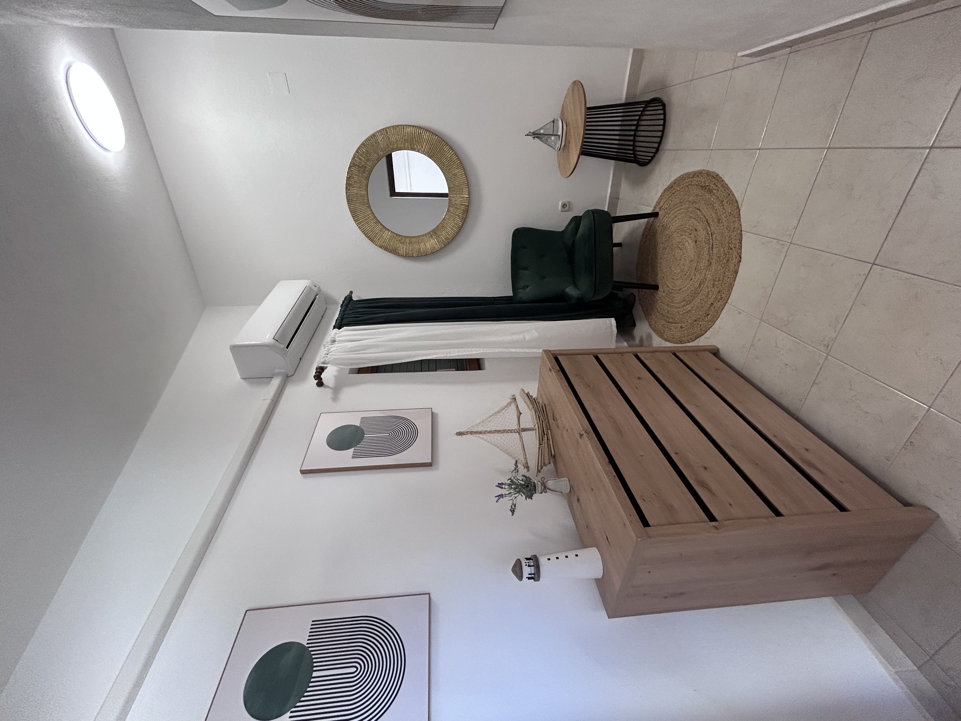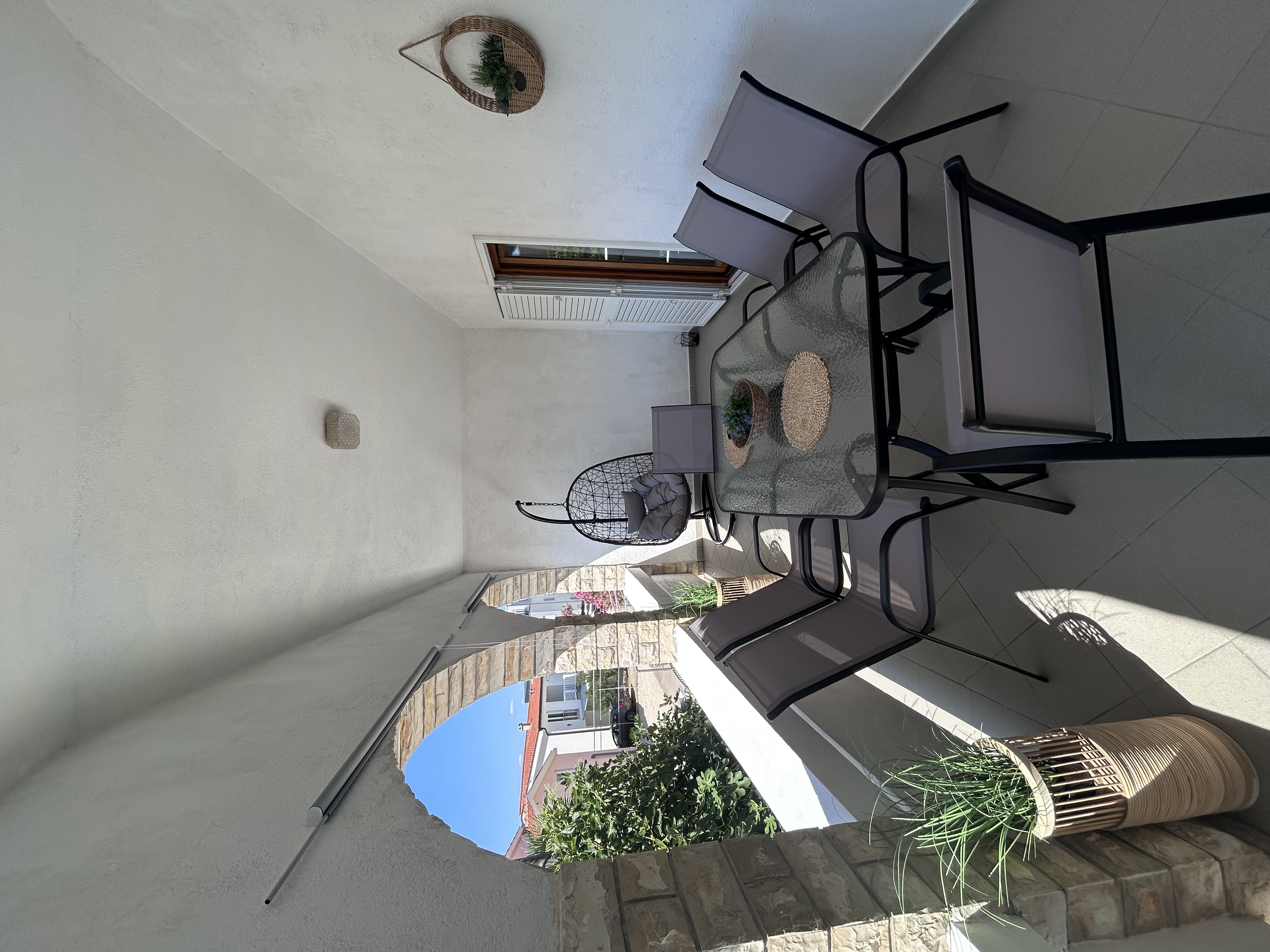 Felső szinten lévő apartman, mely két hálószobával (2 db franciaágy) és egy nappalival (kihúzható kanapé) rendelkezik. Négy felnőtt fér el kényelmesen, de lehetőség van +2 gyermek részére a nappaliban ágyazni. A teraszon a reggelit és a vacsorát kellemes hangulatban lehet elfogyasztani, a fedett terasz tágas és hűvös.